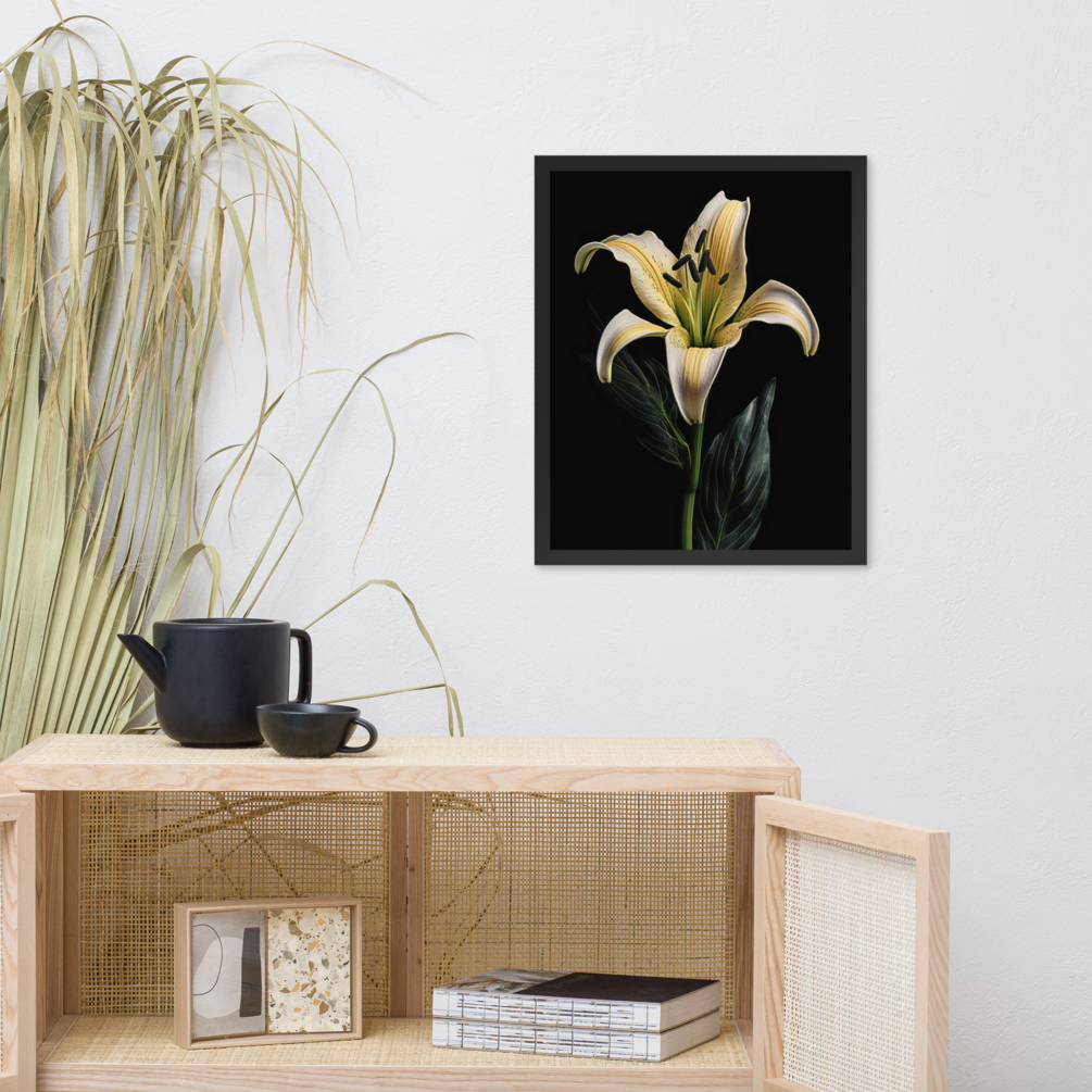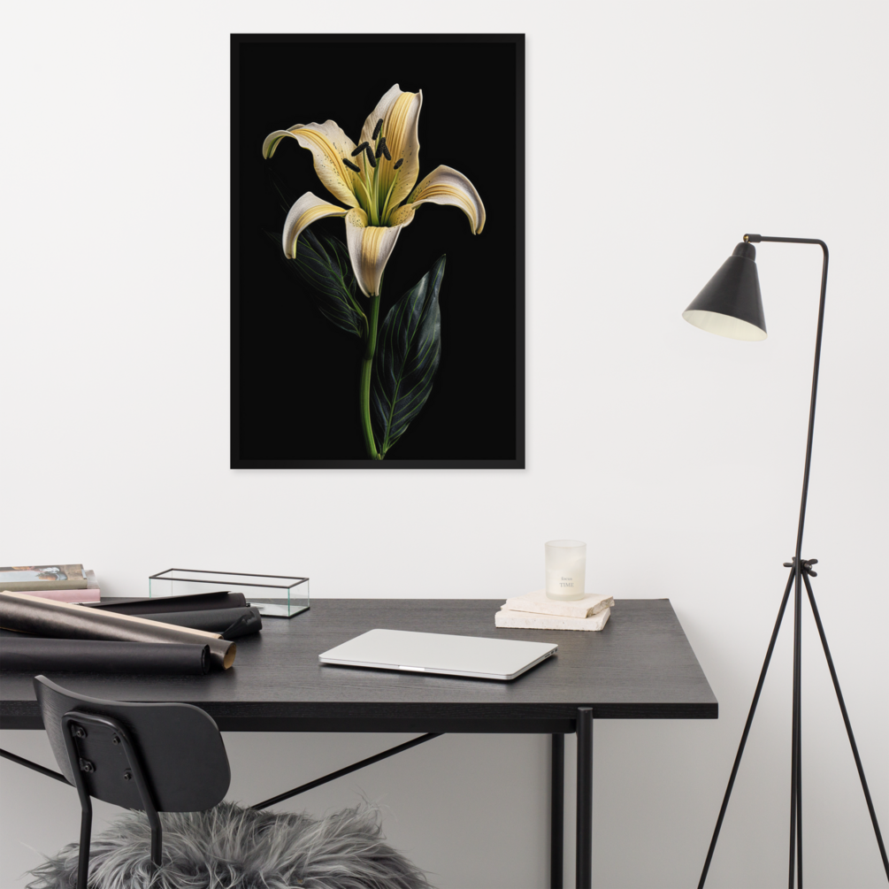 Invite the captivating beauty of "Eternal Blooms: Midnight Lily" into your space with our unframed matte paper poster. This high-quality poster displays the stunning photograph of a Lily, its delicate petals radiating elegance and grace, on a deep black background. Printed on matte paper, the poster enhances the colors and details, allowing the eternal beauty of the Lily to shine. Whether displayed as it is or framed according to your preference, this unframed poster adds a touch of sophistication and natural allure to your home or office decor.